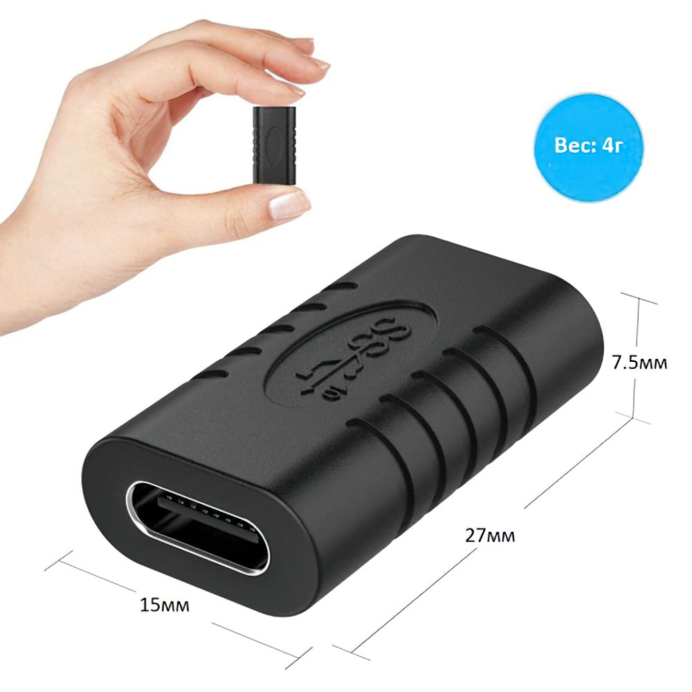 Главная / Кабели, разъемы, адаптеры / Адаптеры, переходники, разъемы / USB / Адаптер USB Type C(f) - Type C(f), черный, KS-is KS-396