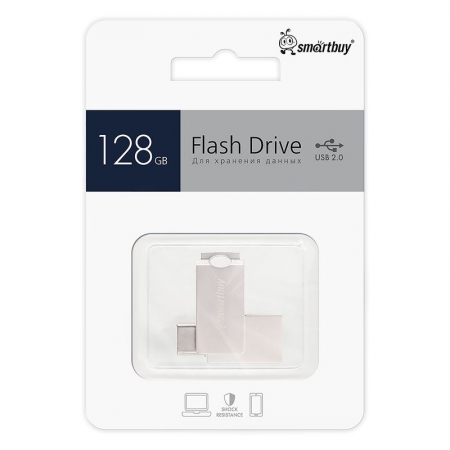 Производитель: SmartBuy Емкость: 128 Гб Разъемы: USB A, USB C Интерфейс: USB 2.0 Материал корпуса: Металл Цвет: Серый