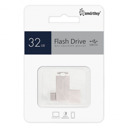 Производитель: SmartBuy Емкость: 32 Гб Разъемы: USB A, USB C Интерфейс: USB 2.0 Материал корпуса: Металл Цвет: Серый