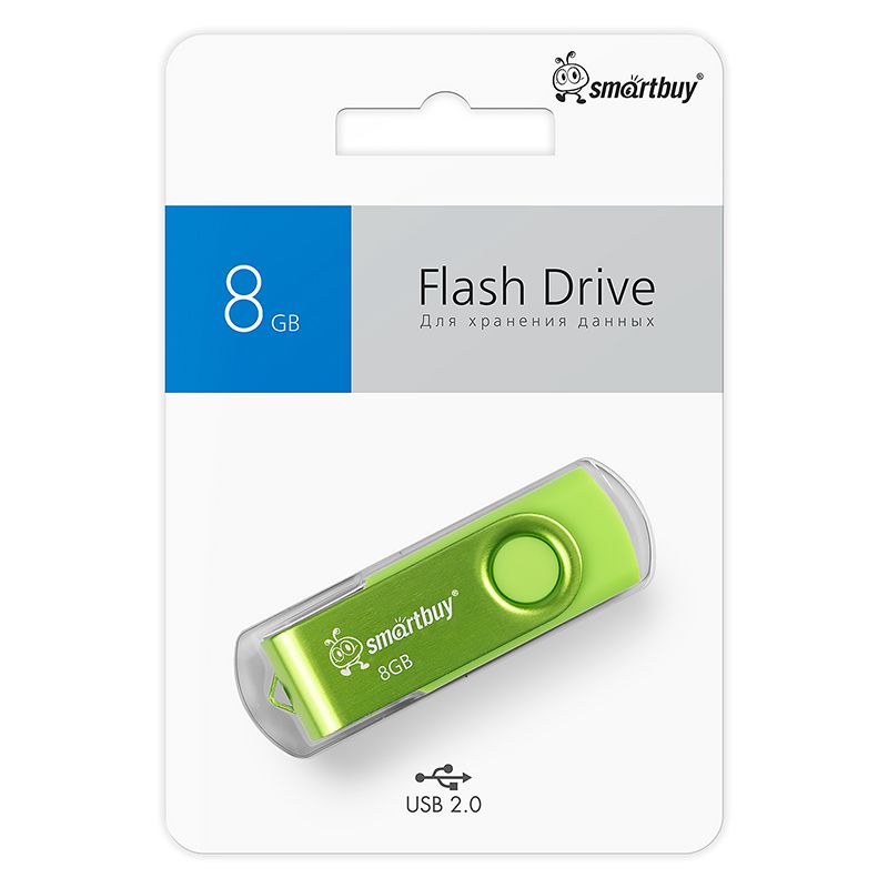SmartBuy Twist - компактный и стильный USB-накопитель с поворотной крышкой. Накопитель совместим с интерфейсом USB 2.0, обеспечивающим скорость передачи данных до 480 Мбит/сек. Отверстие для шнурка позволяет прикрепить флешку к телефону или связке ключей, чтобы она всегда была под рукой.