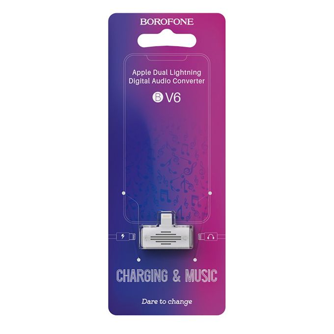 Адаптер Borofone BV6 предназначен для одновременного подключения зарядного устройства и наушников с разъемами Lightning к устройствам Apple. Поддерживает оригинальную гарнитуру Apple с проводным управлением. Благодаря компактным размерам и малому весу адаптер легко помещается в небольшой сумочке или кармане.