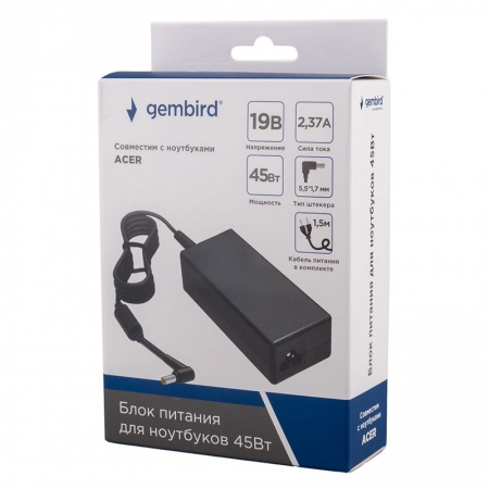 Производитель: Gembird Наименование: Блок питания для ноутбука Совместимость: HP Входное напряжение: 100 - 240 В , 50 / 60 Гц Выходное напряжение: 19.5 В Выходная мощность: 65 Вт Сила тока: 3.33 А Макс. Дополнительно: Защита от короткого замыкания, перегрева, перенапряжения и перегрузки Штекер: 4.5x3мм (угловой) Длина кабеля: 1.5 м (C5) + 1.4 м (встроенный) Материал корпуса: Пластик Цвет: Черный