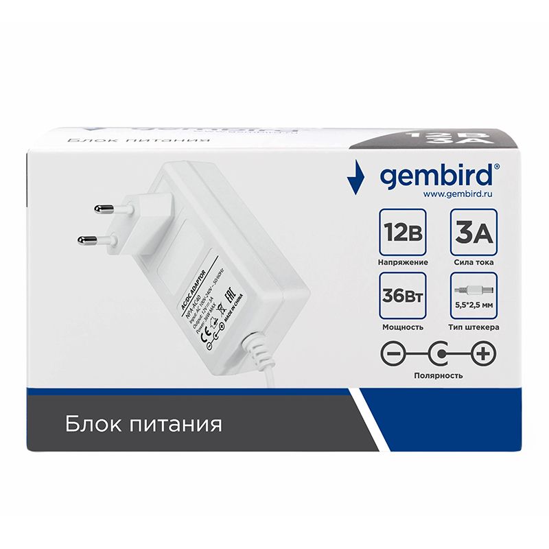 Производитель: Gembird Наименование: Адаптер питания Входящее напряжение: 100 - 240 В Выходящее напряжение: 12 В Сила тока: до 3 А Максимальная мощность: 36 Вт Размер штекера: 5.5*2.5 мм Защита от короткого замыкания: есть Защита от превышения выходного напряжения: есть Защита от перегрузки по току: есть Защита от перегрева: есть Полярность: минус - наружный, плюс - внутренний Длина кабеля: 1 м Цвет: Белый Вес: 112 г