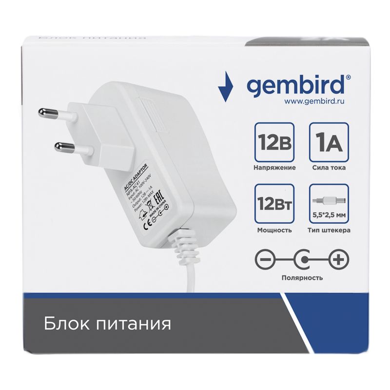 Производитель: Gembird Наименование: Адаптер питания Входящее напряжение: 100 - 240 В Выходящее напряжение: 12 В Сила тока: до 1 А Максимальная мощность: 12 Вт Размер штекера: 5.5*2.5 мм Защита от короткого замыкания: есть Защита от превышения выходного напряжения: есть Защита от перегрузки по току: есть Защита от перегрева: есть Полярность: минус - наружный, плюс - внутренний Длина кабеля: 1 м Цвет: Белый Вес: 72 г