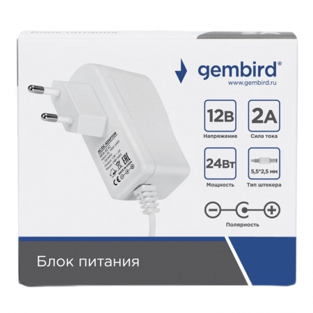 Производитель: Gembird Наименование: Адаптер питания Входящее напряжение: 100 - 240 В Выходящее напряжение: 12 В Сила тока: до 2 А Максимальная мощность: 24 Вт Размер штекера: 5.5*2.5 мм Защита от короткого замыкания: есть Защита от превышения выходного напряжения: есть Защита от перегрузки по току: есть Защита от перегрева: есть Полярность: минус - наружный, плюс - внутренний Длина кабеля: 1 м Цвет: Белый Вес: 127 г
