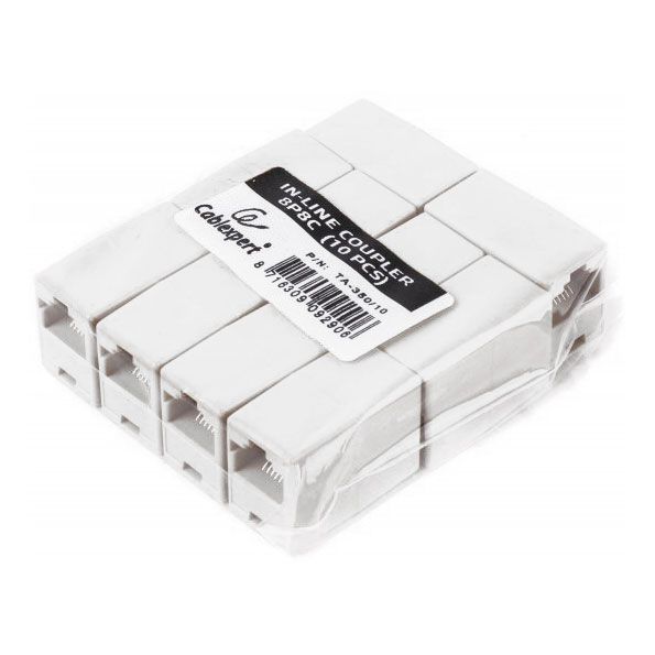 Производитель: Gembird Наименование: Проходной адаптер Разъемы: 8P8C (RJ-45) Тип витой пары: Одножильная или многожильная UTP 5e Число разъемов: 2 Материал корпуса: Пластик Цвет: Белый Кол-во в упаковке: 10