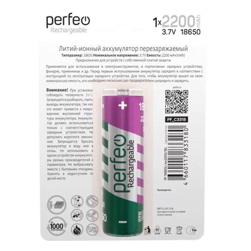Литий-ионный аккумулятор 18650 Perfeo 2200 мАч 3.7V применяется для