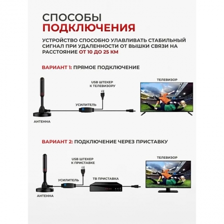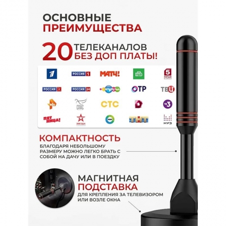 Комнатная активная антенна Selenga 110A предназначена для приема телевизионных программ в полосе частот 174-240 и 470-862МГц. Антенна принимает сигналы аналогового и цифрового телевидения формата DTV-T/DTV-T2. Она оснащена встроенным усилителем сигнала и имеет высокое усиление сигнала (25 дБи), что позволяет её использовать на удалении до 10-25 км от базовой станции. Отличается инновационным дизайном и тонким корпусом. Компактные размеры, малый вес и простая установка обеспечивают удобство использования антенны.