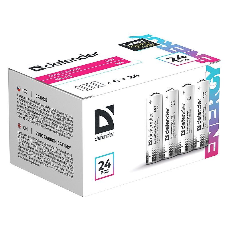 Батарейка AA Defender Zinc R6-S4, 24 шт, коробка (56036)