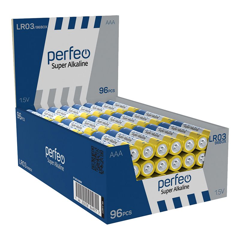 Производитель: Perfeo Наименование: Элемент питания Размер: AAA (LR03) Химический состав: Щелочной Номинальное напряжение: 1.5 В Упаковка: Бокс, индивидуально упакованы в термопленку по 4 шт Кол-во в упаковке: 96 шт