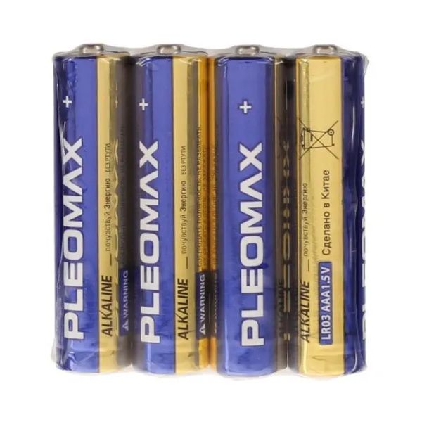 Производитель: Pleomax Наименование: Элемент питания Размер: AAА (LR03) Химический состав: Щелочной Напряжение: 1.5 В Упаковка: Термопленка Количество: 4 шт