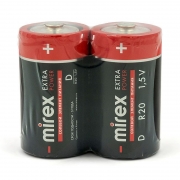 Производитель: Mirex Наименование: Элемент питания Размер: D (R20) Химический состав: Солевой Напряжение: 1.5 В Упаковка: Коробка, индивидуально упакованы в термопленку по 2 шт Количество: 12 шт