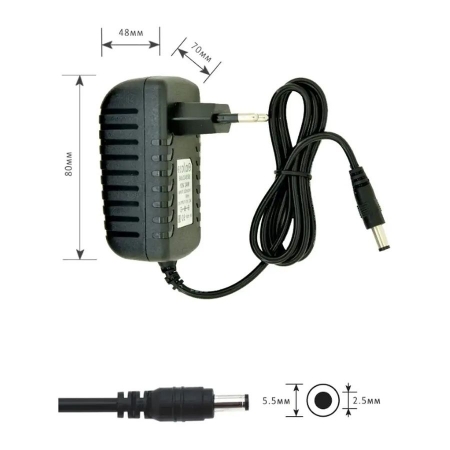 Блок питания используется для подключения светодиодных лент, модулей, светильников и других бытовых приборов. Устройство имеет встроенную защиту от короткого замыкания, перегрева и скачков напряжения. Адаптер оснащен встроенным кабелем длиной 0.9 метра и штекером 5.5x2.5 мм.