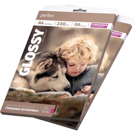 Односторонняя глянцевая водостойкая фотобумага Perfeo для струйной печати, A4, 190 г/м2, 50 листов.