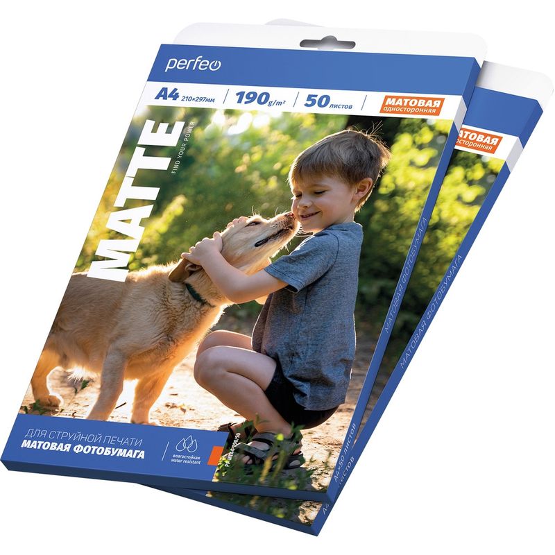 Односторонняя матовая водостойкая фотобумага Perfeo для струйной печати, A4, 190 г/м2, 50 листов.