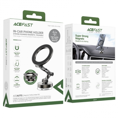 Магнитный держатель Acefast D20 - это идеальный аксессуар для вашего автомобиля, обеспечивающий надежное крепление вашего мобильного устройства на приборной панели. Он сочетает в себе стильный дизайн и функциональность, позволяя вам удобно использовать телефон во время вождения. Автодержатель изготовлен из сплава цинка и имеет складную конструкцию, что позволяет регулировать угол наклона и положение смартфона, не перекрывая обзор водителю. Также имеется возможность поворота на 360 градусов для выбора наиболее удобного угла обзора. Держатель оснащен сверхсильными магнитами, гарантирующими надежную фиксацию устройства даже при движении по неровным дорогам. Совместим с большинством смартфонов, включая iPhone и Android-устройства.