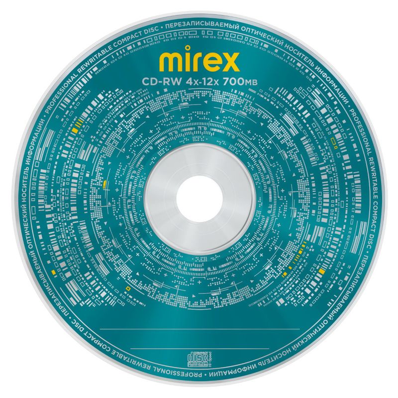 Производитель: Mirex Тип носителя: CD-RW Емкость: 700 Мб (80 мин) Стандарт: Orange Book, Part III Скорость записи: 4х-12х ATIP: MBI Упаковка: Cake box Количество: 25 шт