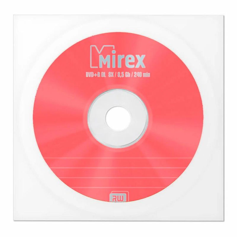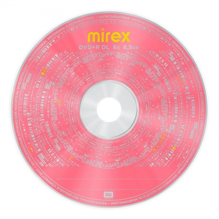Поверхность оформлена в фирменном стиле Mirex, предусмотрено место для пометок о содержимом диска. Предназначен для однократной записи со скоростью 8x и последующего длительного хранения данных. Произведен в соответствии с мировым стандартом и совместим с приводами, поддерживающими формат DVD DL.
