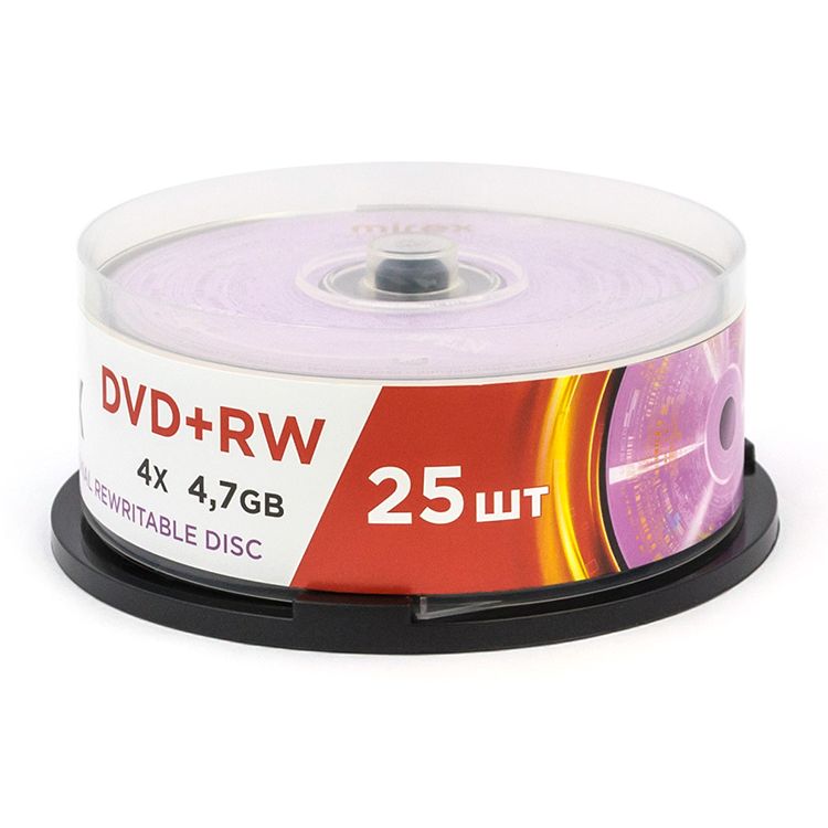 Оптический перезаписываемый диск DVD+RW Mirex 4.7 Гб 4х. Совместим со