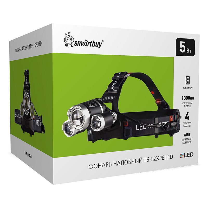 Мощный налобный фонарь SmartBuy SBF-HL053 является идеальным решением для любителей активного отдыха и работы в условиях недостаточной освещенности. Фонарь оснащен тремя светодиодами (1x T6 + 2x XPE) общей мощностью 5 Вт и имеет 4 режима работы. Комфортный эластичный головной ремень имеет возможность регулировки. В качестве источника питания используется литиевый аккумулятор 18650 1200 мАч, который заряжается через USB. Ударопрочный пластиковый корпус предохраняет фонарь от влаги, пыли и повреждений. Технические характеристики
