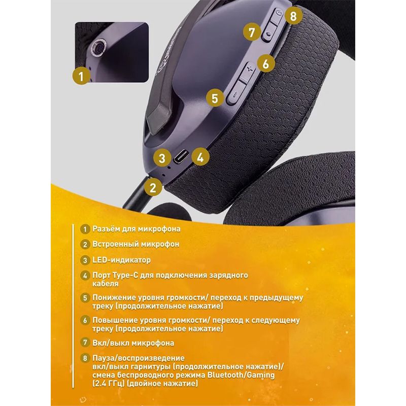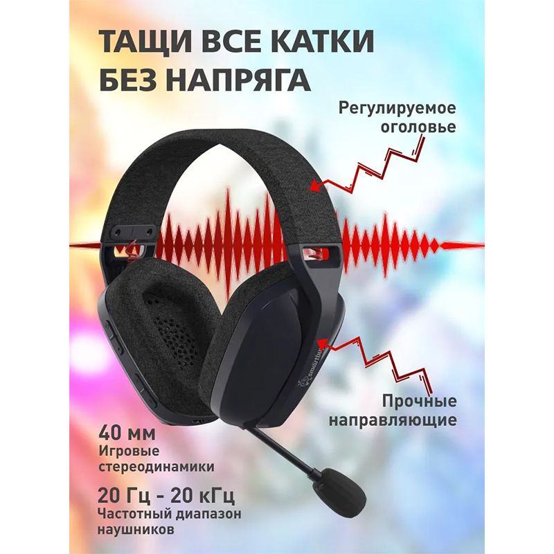 Smartbuy DESTROYER 2 - это универсальная игровая Bluetooth-гарнитура с беспроводной технологией связи и возможностью работать на радио частоте 2.4 ГГц практически без задержек, что особенно важно в компьютерных играх. Гарнитура имеет регулируемое оголовье, прочные направляющие и удобные амбушюры. Микрофон на гибкой ножке обеспечивает качественную передачу звука, а в случае необходимости его можно отсоединить. Управление звуком осуществляется с помощью кнопок, расположенных на чашке одного из наушников. Встроенный аккумулятор обеспечивает до 25 ч автономной работы, заряжается через USB. Технические характеристики