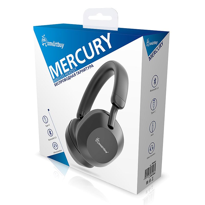 Smartbuy MERCURY - беспроводная полноразмерная стереогарнитура с MP3-плеером и возможностью проводного подключения. Питается устройство от встроенного аккумулятора, который обеспечивает до 8 ч автономной работы. Стильный дизайн, отличный звук и поворотные чашки сделают эту гарнитуру Вашим преданным спутником.