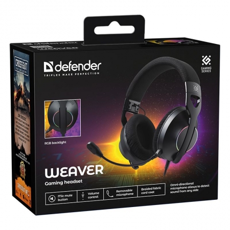 Гарнитура Defender Weaver, игровая, RGB, черная (62540)
