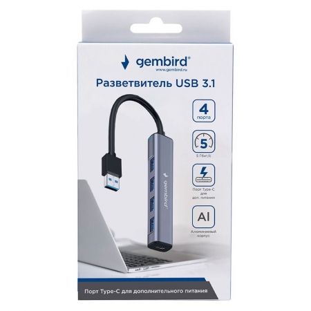 USB-разветвитель Gembird UHB-C484 добавит к компьютеру 4 порта и обеспечит удобное подключение дополнительных USB-устройств. Поддержка интерфейса USB 3.1 позволяет передавать данные на скорости до 5 Гбит/сек. Для подключения внешнего питания имеется разъем Type C. Компактные размеры и укороченный кабель делают его удобным для использования с ноутбуком.