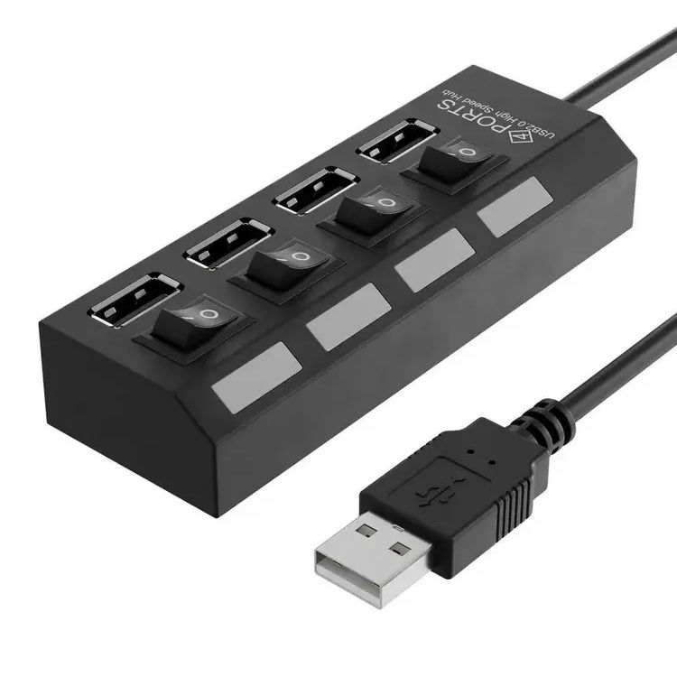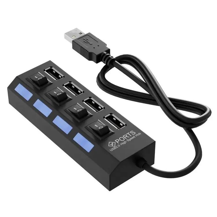 Производитель: Perfeo Наименование: USB-разветвитель Кол-во USB-портов: 4 Интерфейс: USB 2.0 Пропускная способность интерфейса: до 480 Мбит/сек Индикация: 4 x LED Выключатели: 4, для каждого порта Питание: От USB, от внешнего блока питания (приобретается отдельно) Максимальный ток: 500 мА (без блока питания) Разъем для дополнительного питания: 3.5 мм 5В 1А Особенности: встроенная защита от перегрузок Совместимость с ОС: Windows XP/ Vista / 7/ 8/10, MacOS Длина кабеля: 45 см Материал корпуса: Пластик Цвет: Черный