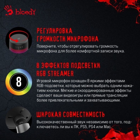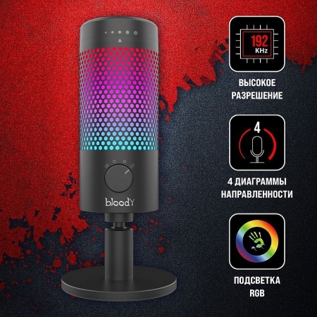 A4TECH Bloody GM50 Pro - игровой микрофон с RGB-подсветкой, регулировкой