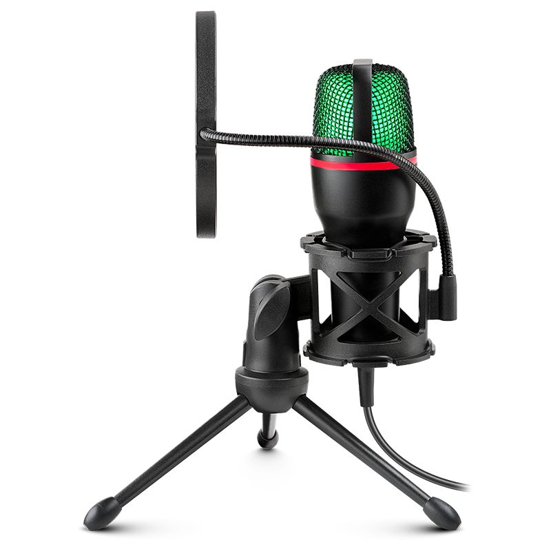 Defender Forte GMC 300 - игровой стрим микрофон с поп-фильтром и RGB-подсветкой. Подставка-тренога с поворотным держателем и регулируемым углом наклона позволяет удобно расположить микрофон на рабочем столе. Микрофон совместим с любыми ПК и ноутбуками с разъемом USB. Особенности