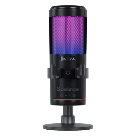 Defender Impulse GMC 400 - игровой стрим микрофон с режимом шумоподавления для качественной записи. Совместим с любыми ПК и ноутбуками с USB-разъемом. RGB-подсветка, разъем для наушников, штатив и поп-фильтр в комплекте.