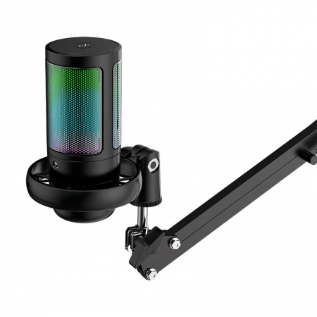 Игровой стрим микрофон Defender Space GMC 550 USB, RGB, стойка, кабель 1.8 м, черный (64655)