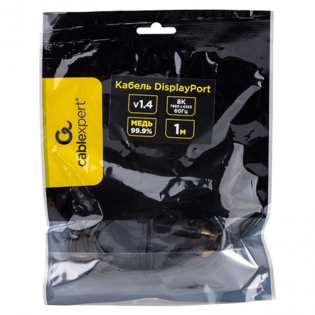 Производитель: Cablexpert Наименование: Кабель DisplayPort Версия DisplayPort: V1.4 Разъемы: DisplayPort 20М - 20M Поддерживаемое разрешение: до 7680 x 4320 (60 Гц) Скорость передачи данных: до 32.4 Гбит/с Материал проводников: Медь Особенности: Тройное экранирование Длина: 1 м Цвет: Черный