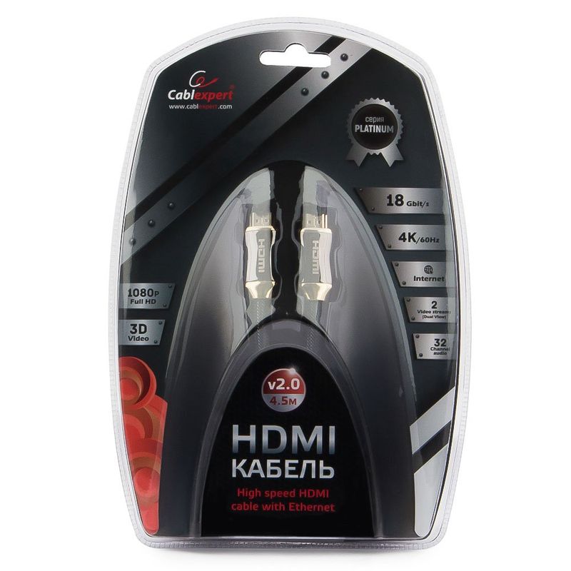 Кабель HDMI 19M-19M V2.0, 4.5 м, черный, нейлон, метал. коннекторы, Cablexpert (CC-P-HDMI03-4.5M)