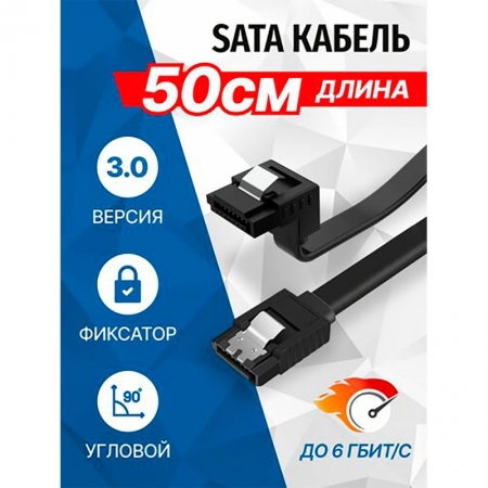 Кабель интерфейсный S-ATA III DATA для подключения жестких дисков, DVD-приводов и других совместимых устройств к контроллеру на материнской плате. Оснащен прямым и угловым коннекторами с защелками. Длина кабеля 0.5 метра. Технические характеристики