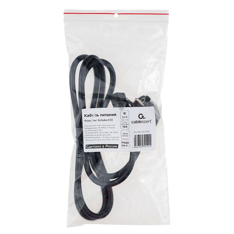 Производитель: Cablexpert Наименование: Кабель питания Разъемы: Schuko CEE 7/7 (S22) - IEC 320 C13 Сила тока: 10 А Суммарная номинальная мощность нагрузки: 2200 Вт Заземление: Да Провод: 3 х 1.5 кв.мм Материал проводников: Медь Длина кабеля: 1.5 м Цвет: Чёрный