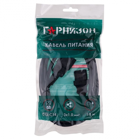 Кабели питания Гарнизон PC-189 используется для подключения электрооборудования к сети переменного тока. С одной стороны кабель имеет разъем стандарта IEC 320 C14, а с другой стороны разъем стандарта IEC 320 C13. В кабеле применяется провод сечением 1 мм2. Суммарная мощность нагрузки 3500 Вт.