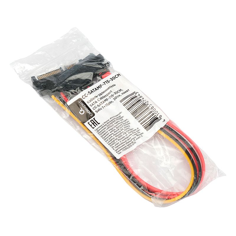 Производитель: Cablexpert Наименование: Кабель-удлинитель Интерфейс: S-ATA Материал проводника: Медь Разъемы:SATA 7 + 15 pin (m) - 7 + 15 pin (f) Длина кабеля: 30 см