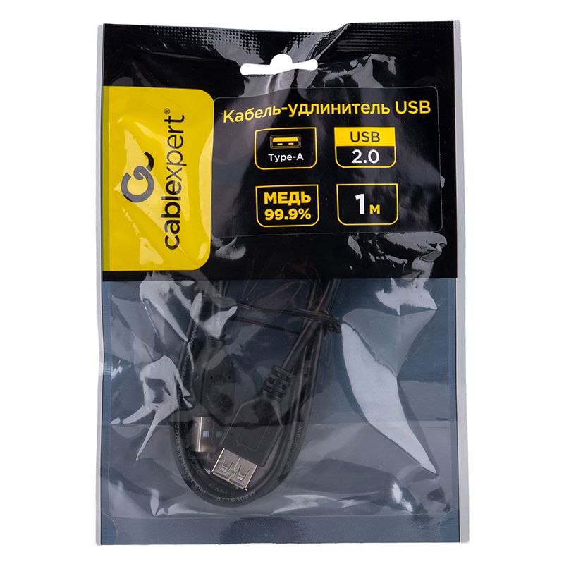 Производитель: Cablexpert Наименование: USB кабель удлинитель Интерфейс: USB 2.0 Разъемы: USB A(m) - A(f) Скорость передачи данных: до 480 Мбит/сек Экранирование: Двойное (фольга + сетка) Длина кабеля: 1 м Цвет: Черный