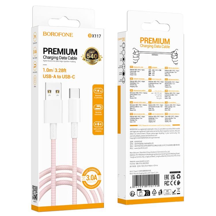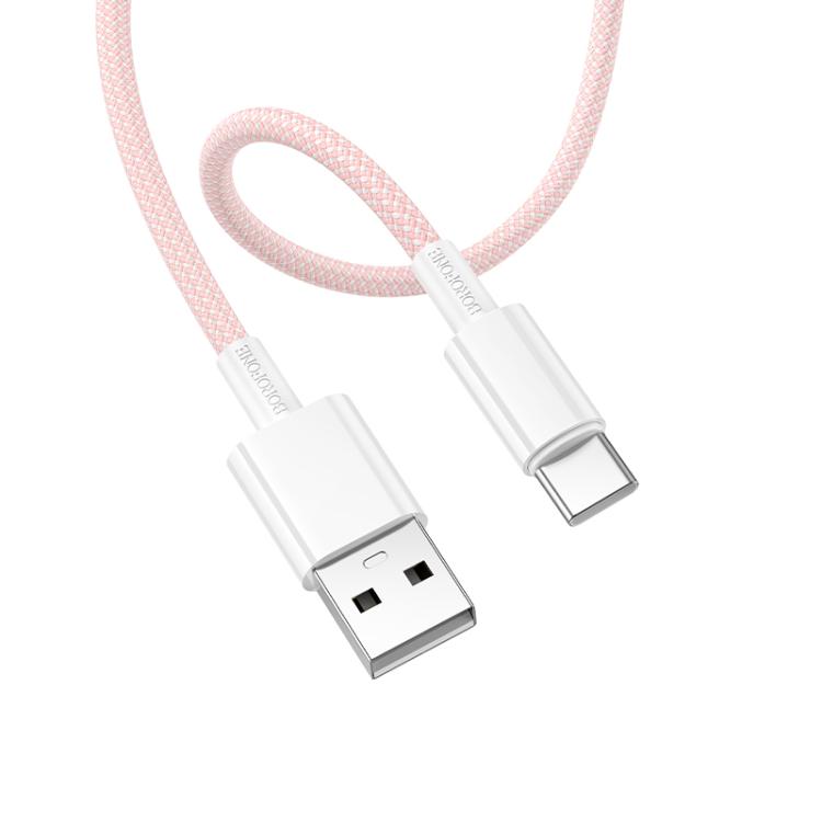 Кабель USB 2.0 - Type C, 1 м, 3A, розовый, нейлон, Borofone BX117