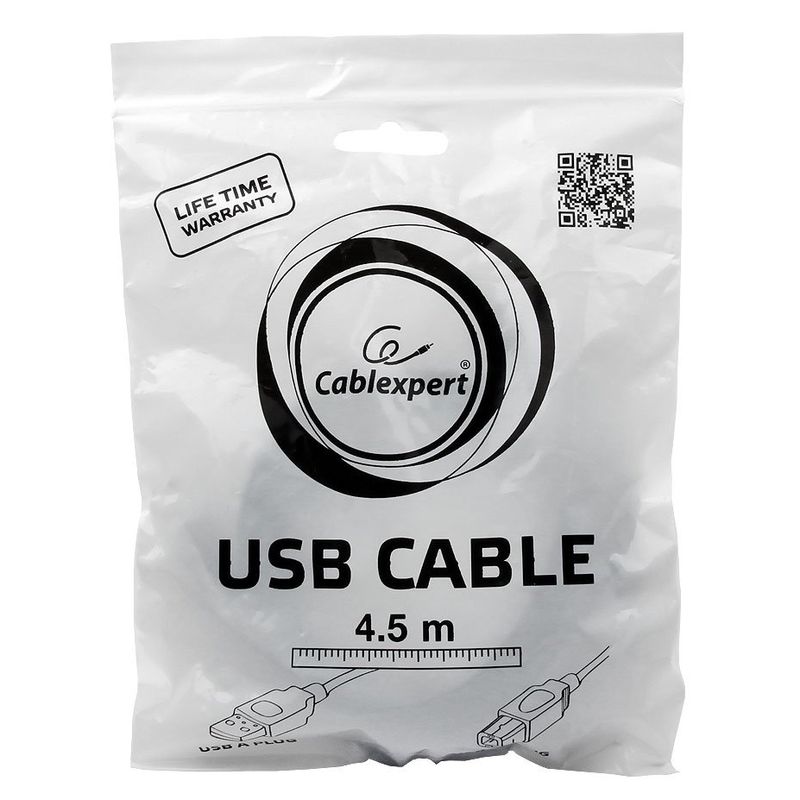 Производитель: Cablexpert Наименование: USB-кабель Разъемы: USB AM - BM Интерфейс: USB 2.0 Скорость передачи данных: до 480 Мбит/сек Максимальный ток: 2.4 А Материал проводников: Медь Толщина жил (передача данных / питание): 28 / 26 AWG Экранирование: Двойное (фольга + сетка) Длина кабеля: 4.5 м Цвет: Черный