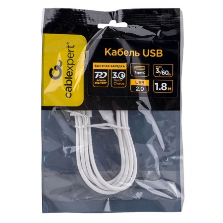 Производитель: Cablexpert Наименование: USB-кабель Предназначение: Синхронизация, передача данных, подзарядка Интерфейс: USB 2.0 Пропускная способность интерфейса: до 480 Мбит/сек Максимальный ток: 3 А Максимальная мощность: 60 Вт Поддержка быстрой зарядки: PD / QC3.0 Разъемы: 2 x Type C (m) Материал проводников: Медь Толщина жил (передача данных / питание): 30 / 24 AWG Длина кабеля: 1.8 м Цвет: Белый