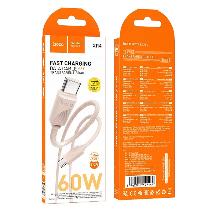 Кабель предназначен для соединения устройств, оснащенных разъемами Type C. Подходит для зарядки/передачи данных смартфонов, планшетов и другой портативной техники. Поддерживает протоколы быстрой зарядки PD / QC3.0, максимальная мощность 60 Вт.