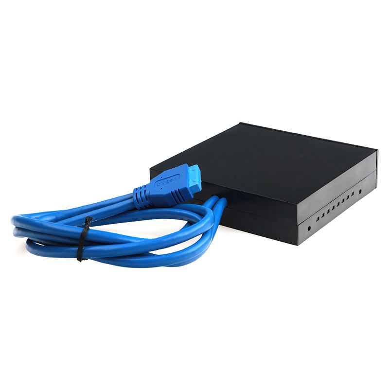 Внутренний картридер Gembird FDI2-ALLIN1-03-B предназначен для установки в 3,5 отсек системного блока. Устройство оснащено 5 слотами поддерживающими большинство типов карт памяти, индикаторами питания и передачи данных, а также портом USB 3.0. Подключается к 19-pin разъему на материнской плате.