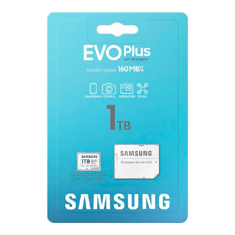 Главная / Карты памяти, ридеры / Secure Digital / Карта памяти Micro SDXC 1Tb Samsung EVO+ U3 A2 V30, R160 Мб/с + адаптер SD (MB-MC1T0SA/KR)