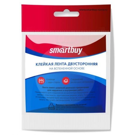 Двусторонняя клейкая лента на вспененной основе Smartbuy 1x19 мм, 2 метра, применяется для соединения различных материалов: стекло, металл, пластмасса, грунтованное дерево, кожа, ткань, и т.п. Устойчива к воздействию масляных веществ , пластификаторов, влаги, УФ лучей, растворителей. Устойчива к старению. Имеет высокую прочность на разрыв: один метр ленты выдерживает до 2.5 кг. Технические характеристики