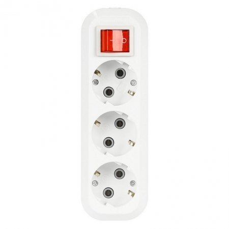 Колодка с 3 розетками с заземлением и встроенным выключателем.