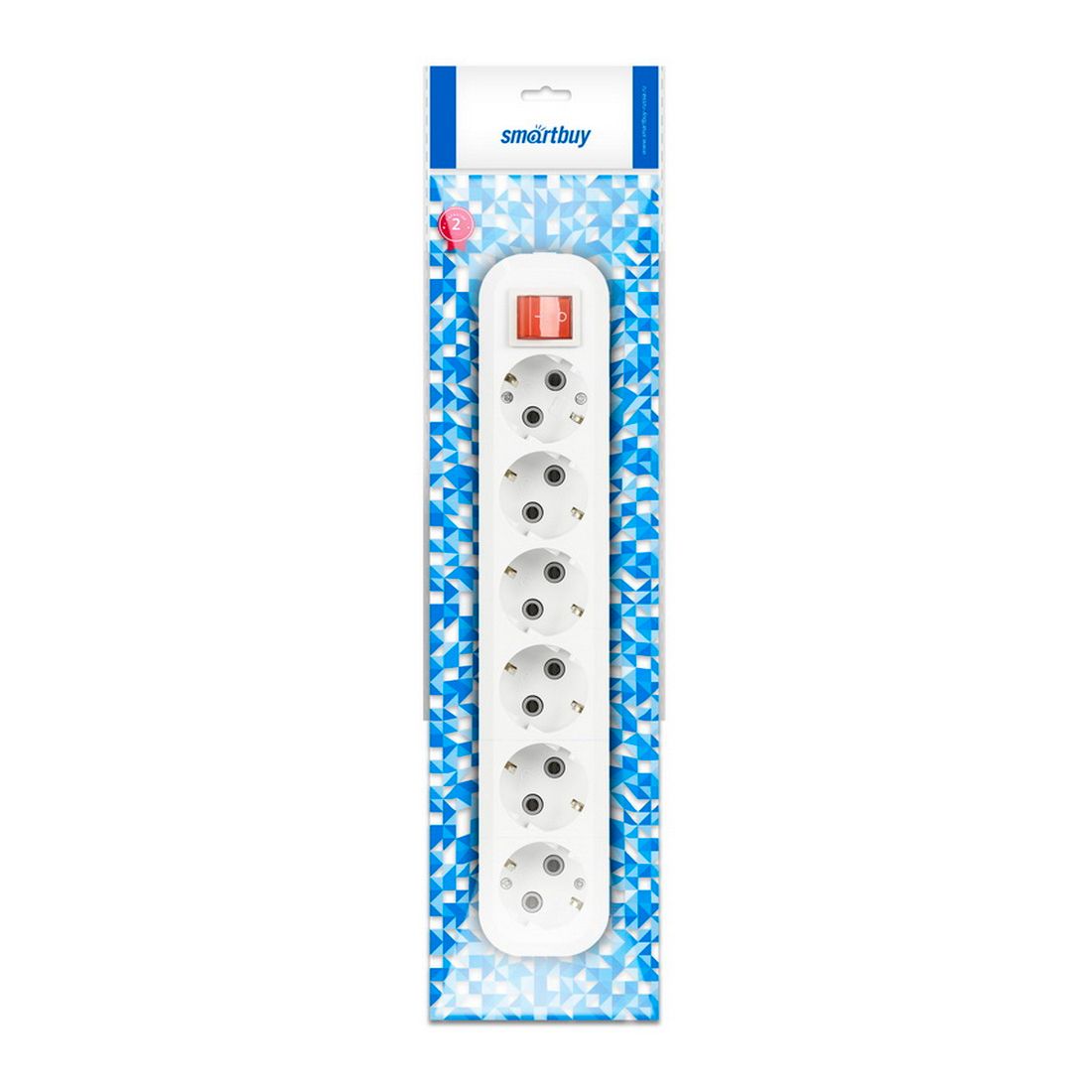 Колодка розеточная 6 гнезд с выключателем и заземлением, 16А 220В, белая, Smartbuy (SBE-16-6-00-ZS)