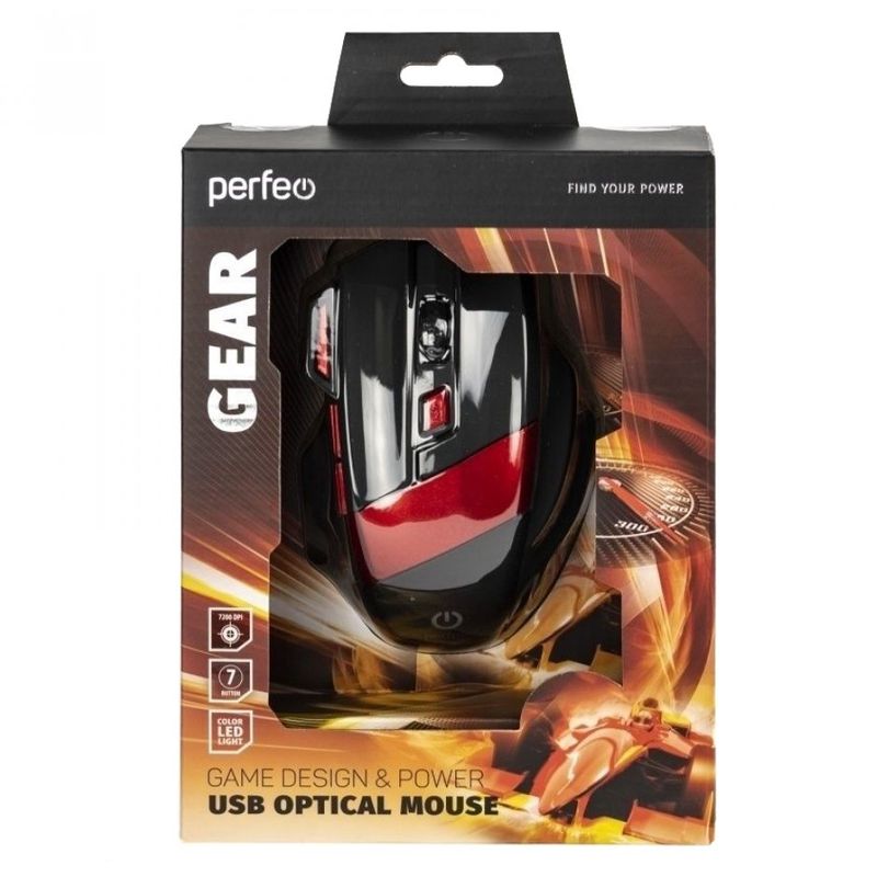 Perfeo "GEAR" - игровая проводная мышь с 7 кнопками и LED-подсветкой корпуса. Тщательно продуманный дизайн способствует комфортному управлению мышью и препятствует ее выскальзыванию из руки при интенсивных движениях. Оптический сенсор со сменным разрешением 800/1200/1600/2400/3200 dpi позволяет использовать манипулятор для работы в различных приложениях и обеспечивает точное позиционирование курсора для ведения прицельной стрельбы по противнику. Помимо основных, в мыши предусмотрены дополнительные боковые кнопки и кнопка двойного клика. Мышь подключается к USB-порту компьютера и не требует установки драйверов.